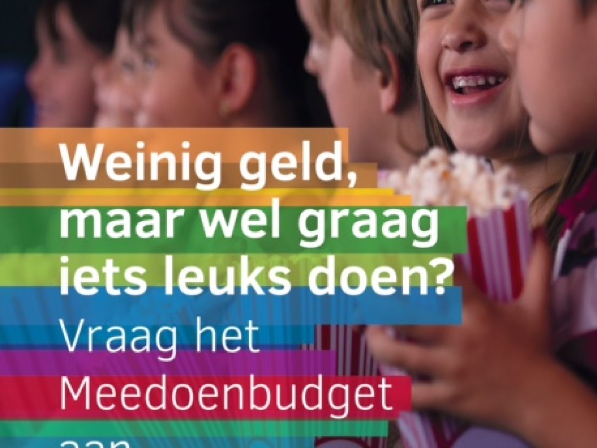 Weinig geld voor leuke dingen of sport? Vraag het Meedoenbudget aan! Heeft u een laag inkomen? Dan kunt u via de gemeente Hoorn een HoornPas met Meedoenbudget aanvragen. Hiermee betaalt u sport-, culturele en educatieve activiteiten. Volwassenen ontvangen € 100,- per jaar, kinderen tot 18 jaar € 250,-. De pas is niet inwisselbaar voor geld, maar te besteden bij aangesloten organisaties in Hoorn. Aanvragen kan via www.hoorn.nl/meedoen . Hulp nodig bij het aanvragen? Kijk op www.hoorn.nl/hulpbijteksten .